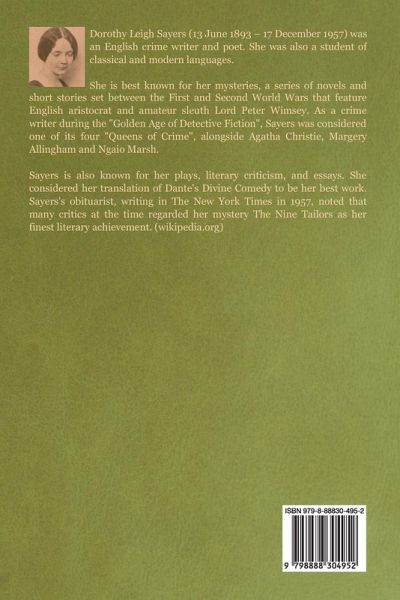 Whose Body? is a 1923 mystery novel by Dorothy L. Sayers. It was her debut novel, and the book in which she introduced the character of Lord Peter Wimsey. In their review of crime novels (revised edn 1989), the US writers Barzun and Taylor call Whose Body? "a stunning first novel that disclosed the advent of a new star in the firmament, and one of the first magnitude. The episode of the bum in the bathtub, the character (and the name) of Sir Julian Freke, the detection, and the possibilities in Peter Wimsey are so many signs of genius about to erupt. Peter alone suffers from fatuousness overdone, a period fault that Sayers soon blotted out". A. N. Wilson, writing in 1993, noted that "The publisher made [Sayers] tone the story down, but the plot depends on Lord Peter being clever enough to spot that the body, uncircumcised, is not that of a Jew". In the 1923 text, Parker says that the body in the bath could not be Sir Reuben Levy because "Sir Reuben is a pious Jew of pious parents, and the chap in the bath obviously isn't ..." Later versions replaced this with "But as a matter of fact, the man in the bath is no more Sir Reuben Levy than Adolf Beck, poor devil, was John Smith". In her introduction to Hodder & Stoughton's 2016 reprint, Laura Wilson notes that Wimsey, conceived as a caricature of the gifted amateur sleuth, owes something to P. G. Wodehouse, whose Bertie Wooster had made his first appearance some years earlier. Sayers said of Wimsey that "at the time I was particularly hard up and it gave me pleasure to spend his fortune for him. When I was dissatisfied with my single unfurnished room I took a luxurious flat for him in Piccadilly. ... I can heartily recommend this inexpensive way of furnishing to all who are discontented with their incomes". In his 2017 overview of the classic crime genre, Martin Edwards notes that Lord Peter Wimsey began his life as a fantasy figure, created "as a conscious act of escapism by young writer who was short of money and experiencing one unsatisfactory love affair after another". (wikipedia.org) About the author: Dorothy Leigh Sayers (13 June 1893 - 17 December 1957) was an English crime writer and poet. She was also a student of classical and modern languages. She is best known for her mysteries, a series of novels and short stories set between the First and Second World Wars that feature English aristocrat and amateur sleuth Lord Peter Wimsey. As a crime writer during the "Golden Age of Detective Fiction", Sayers was considered one of its four "Queens of Crime", alongside Agatha Christie, Margery Allingham and Ngaio Marsh. Sayers is also known for her plays, literary criticism, and essays. She considered her translation of Dante's Divine Comedy to be her best work. Sayers's obituarist, writing in The New York Times in 1957, noted that many critics at the time regarded her mystery The Nine Tailors as her finest literary achievement. (wikipedia.org)