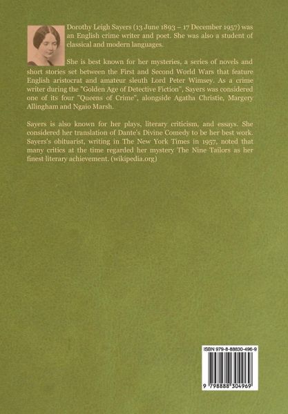 Whose Body? is a 1923 mystery novel by Dorothy L. Sayers. It was her debut novel, and the book in which she introduced the character of Lord Peter Wimsey. In their review of crime novels (revised edn 1989), the US writers Barzun and Taylor call Whose Body? "a stunning first novel that disclosed the advent of a new star in the firmament, and one of the first magnitude. The episode of the bum in the bathtub, the character (and the name) of Sir Julian Freke, the detection, and the possibilities in Peter Wimsey are so many signs of genius about to erupt. Peter alone suffers from fatuousness overdone, a period fault that Sayers soon blotted out". A. N. Wilson, writing in 1993, noted that "The publisher made [Sayers] tone the story down, but the plot depends on Lord Peter being clever enough to spot that the body, uncircumcised, is not that of a Jew". In the 1923 text, Parker says that the body in the bath could not be Sir Reuben Levy because "Sir Reuben is a pious Jew of pious parents, and the chap in the bath obviously isn't ..." Later versions replaced this with "But as a matter of fact, the man in the bath is no more Sir Reuben Levy than Adolf Beck, poor devil, was John Smith". In her introduction to Hodder & Stoughton's 2016 reprint, Laura Wilson notes that Wimsey, conceived as a caricature of the gifted amateur sleuth, owes something to P. G. Wodehouse, whose Bertie Wooster had made his first appearance some years earlier. Sayers said of Wimsey that "at the time I was particularly hard up and it gave me pleasure to spend his fortune for him. When I was dissatisfied with my single unfurnished room I took a luxurious flat for him in Piccadilly. ... I can heartily recommend this inexpensive way of furnishing to all who are discontented with their incomes". In his 2017 overview of the classic crime genre, Martin Edwards notes that Lord Peter Wimsey began his life as a fantasy figure, created "as a conscious act of escapism by young writer who was short of money and experiencing one unsatisfactory love affair after another". (wikipedia.org) About the author: Dorothy Leigh Sayers (13 June 1893 - 17 December 1957) was an English crime writer and poet. She was also a student of classical and modern languages. She is best known for her mysteries, a series of novels and short stories set between the First and Second World Wars that feature English aristocrat and amateur sleuth Lord Peter Wimsey. As a crime writer during the "Golden Age of Detective Fiction", Sayers was considered one of its four "Queens of Crime", alongside Agatha Christie, Margery Allingham and Ngaio Marsh. Sayers is also known for her plays, literary criticism, and essays. She considered her translation of Dante's Divine Comedy to be her best work. Sayers's obituarist, writing in The New York Times in 1957, noted that many critics at the time regarded her mystery The Nine Tailors as her finest literary achievement. (wikipedia.org)