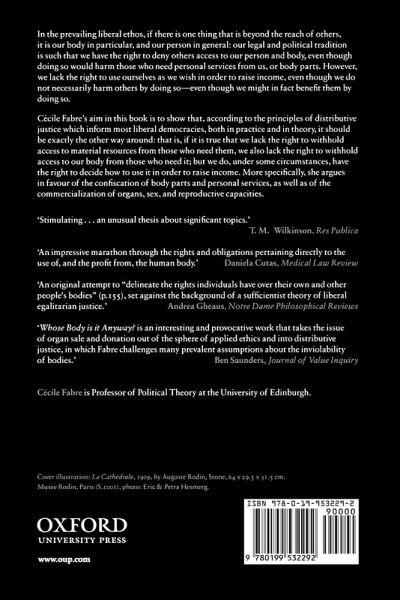 Do we have the right to deny others access to our body? What if this would harm those who need personal services or body parts from us? Cecile Fabre examines the impact that arguments for distributive justice have on the rights we have over ourselves, and on such contentious issues as organ sales, prostitution, and surrogate motherhood.