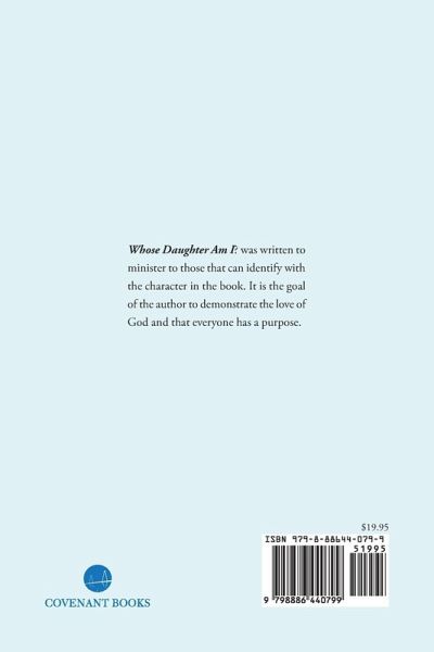 Whose Daughter Am I? was written to minister to those that can identify with the character in the book. It is the goal of the author to demonstrate the love of God and that everyone has a purpose.