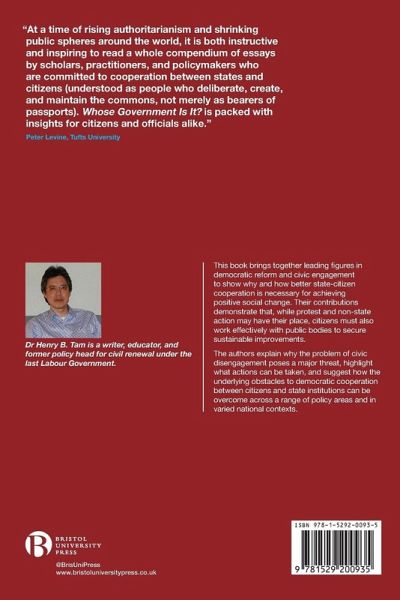 Dr Henry B. Tam is a writer, educator, and former policy head for civil renewal under the last Labour Government. He has been Director of the Forum for Youth Participation & Democracy, University of Cambridge; Lecturer on politics and government for Workers' Educational Association and the Civil Service College; and Visiting Professor, School of Lifelong Learning, Birkbeck, University of London.