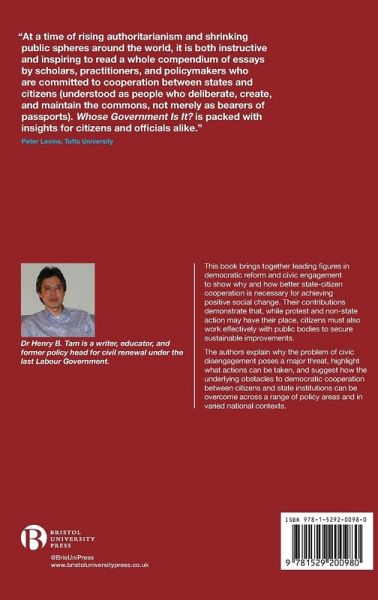 Dr Henry B. Tam is a writer, educator, and former policy head for civil renewal under the last Labour Government. He has been Director of the Forum for Youth Participation & Democracy, University of Cambridge; Lecturer on politics and government for Workers' Educational Association and the Civil Service College; and Visiting Professor, School of Lifelong Learning, Birkbeck, University of London.
