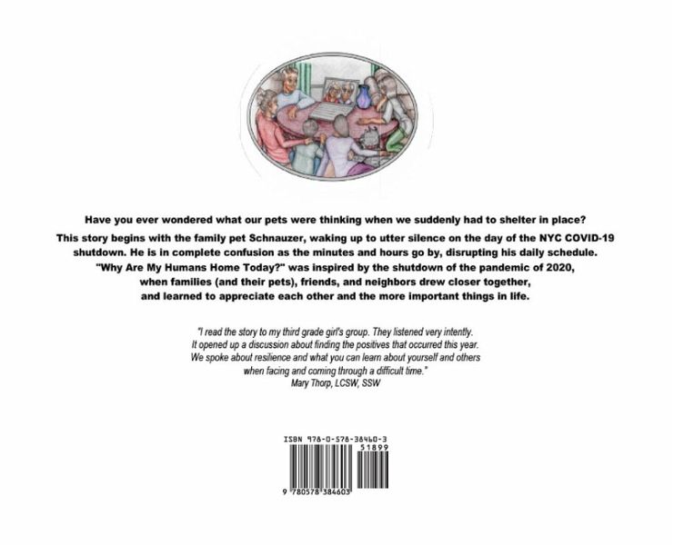 Have you ever wondered what our pets were thinking when we suddenly had to shelter in place? This story begins with the family pet Schnauzer, waking up to utter silence on the day of the NYC COVID-19 shutdown. He is in complete confusion as the minutes and hours go by, disrupting his daily schedule. "Why Are My Humans Home Today?" was inspired by the shutdown of the pandemic of 2020, when families (and their pets), friends, and neighbors drew closer together, and learned to appreciate each other and the more important things in life.