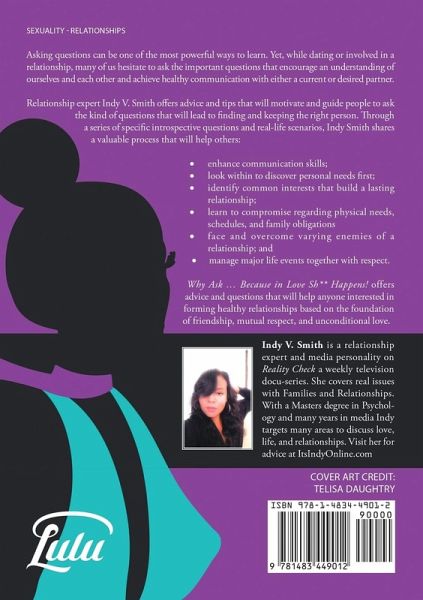 Relationship expert Indy V. Smith offers advice and tips that will motivate and guide people to ask the kind of questions that will lead to finding and keeping the right person. Through a series of specific introspective questions and real-life scenarios, Indy Smith shares a valuable process that will help others: enhance communication skills; look within to discover personal needs first; identify common interests that build a lasting relationship; learn to compromise regarding physical needs, schedules, and family obligations face and overcome varying enemies of a relationship; and manage major life events together with respect. Why Ask ... Because in Love Sh** Happens! offers advice and questions that will help anyone interested in forming healthy relationships based on the foundation of friendship, mutual respect, and unconditional love.