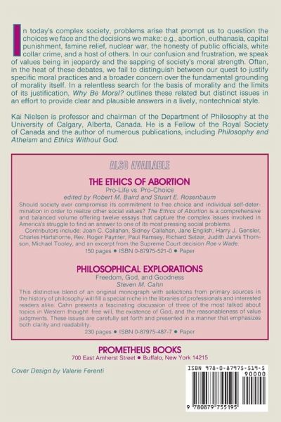 Noted philosopher Kai Nielsen offers an answer to this fundamental question - a question that reaches in to grasp at the very heart of ethics itself. Essentially, this innocent inquiry masks a confusion that so many of us get caught in as we think about moral issues. We fail to realize that there is a difference between judging human behavior within an ethical context, or set of moral principles, and justifying the principles themselves. According to Nielsen, it is precisely this basic muddle that has spawned all sorts of challenges to morality, from relativism and intuitionism to egoism and skepticism. Nielsen first argues the case for these challenges in the strongest possible terms; then he shows that their failure to establish themselves demonstrates a fundamental flaw - an inability to understand what it means to have good reasons for the moral claims we make. In his search for "good reasons," Nielsen must face the innocent question "Why be moral?" He tries to show us that skirmishes among supporters of specific moral principles require a different sort of resolution than those that occur between groups of ethical principles. Justifying an action within a moral point of view is quite different from making the case for having a moral point of view in the first place. In its relentless search for the very basis of morality and the limits of moral justification, Why Be Moral? outlines the essential questions that will help us clear away confusion. Nielsen's approach will interest and delight informed readers and professionals alike. This vital work addresses itself to thoughtful people everywhere who are perplexed about morality and about the foundations of the moral life.