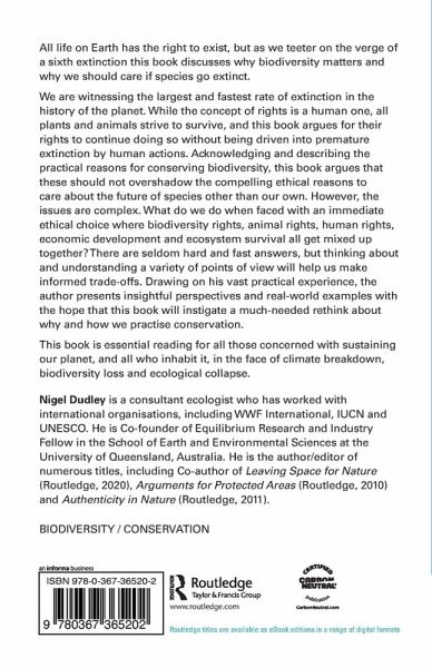 All life on Earth has the right to exist, but as we teeter on the verge of a sixth extinction this book discusses why biodiversity matters and why we should care if species go extinct.