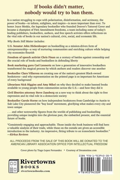 If books didn't matter, nobody would try to ban them. In a nation struggling to cope with polarization, disinformation, acrimony, the power of books-to inform, enlighten, and inspire-is more important than ever. To honor Joyce Meskis, the legendary bookseller who founded Denver's Tattered Cover and became a champion of First Amendment freedoms, a team including some of today's leading publishers, booksellers, authors, and free speech activists offers reflections on the vital role of books in our nation's cultural, civic, social, and economic life. Why Books Still Matter includes: U.S. Senator John Hickenlooper on bookselling as a mission-driven form of entrepreneurship-a way of nurturing communities and enriching culture while helping city economies flourish Freedom of speech activist Chris Finan on a century of battles against censorship and the crucial role of books and booksellers in defending liberty Book marketing guru Carl Lennertz on how a generation of innovative booksellers transformed the magical process by which authors and readers discover one another Bookseller Clara Villarosa on creating one of the nation's greatest Black-owned bookstores-and why representation on the printed page is so important for Americans of every background Librarians Nick Higgins and Amy Mikel on why they decided to make banned books available to young people from communities across the U.S.-and how they did it Civil liberties attorney Steve Zansberg on a new way to think about the right to free expression and its vital role in a democratic society Bookseller Carole Horne on how independent bookstores from Cambridge to Austin to Salt Lake City pioneered the "buy local" movement, glorifying what makes every city and town unique . . . and other noteworthy figures from the worlds of publishing and bookselling providing unique insights into the glorious past, the embattled present, and the essential future of books. All proceeds will be donated to the American Library Association Office for Intellectual Freedom.
