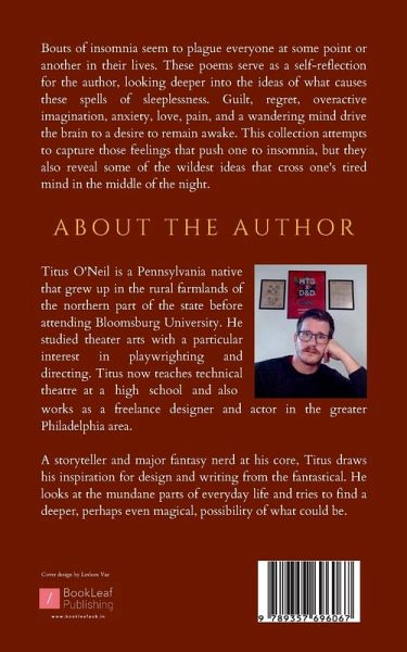Bouts of insomnia seem to plague everyone at some point or another in their lives. These poems serve as a self-reflection for the author, looking deeper into the ideas of what causes these spells of sleeplessness. Guilt, regret, overactive imagination, anxiety, love, pain, and a wandering mind drive the brain to a desire to remain awake. This collection attempts to capture those feelings that push one to insomnia, but they also reveal some of the wildest ideas that cross one's tired mind in the middle of the night.