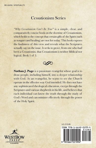 "Why Cessationism Can't Be True" is a simple, clear, and comparatively concise book on the doctrine of Cessationism, which holds to the concept that certain gifts of the Spirit (such as tongues and healing) are not for today. This book exposes the faultiness of this view and reveals what the Scriptures actually say on the issue. It seeks to prove, from one who had been a Cessationist, that Cessationism is neither Biblical nor logical. Book 1 of 3.