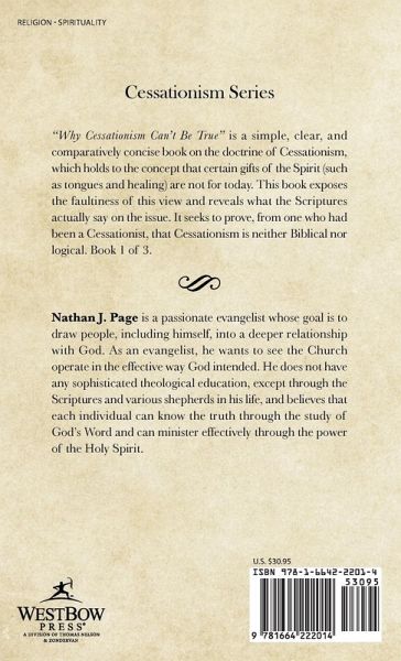 "Why Cessationism Can't Be True" is a simple, clear, and comparatively concise book on the doctrine of Cessationism, which holds to the concept that certain gifts of the Spirit (such as tongues and healing) are not for today. This book exposes the faultiness of this view and reveals what the Scriptures actually say on the issue. It seeks to prove, from one who had been a Cessationist, that Cessationism is neither Biblical nor logical. Book 1 of 3.