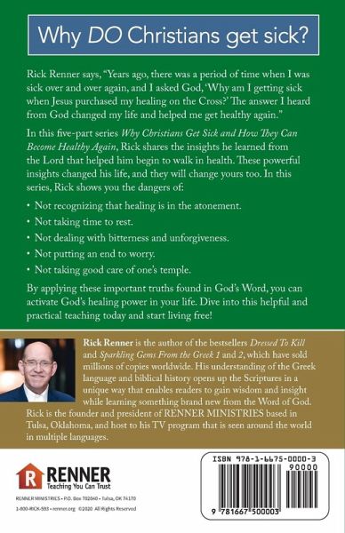 Why DO Christians get sick? Rick Renner says, "Years ago, there was a period of time when I was sick over and over again, and I asked God, 'Why am I getting sick when Jesus purchased my healing on the Cross?' The answer I heard from God changed my life and helped me get healthy again."¿¿ In this five-part series Why Christians Get Sick and How They Can Become Healthy Again, Rick shares the insights he learned from the Lord that helped him begin to walk in health. These powerful insights changed his life, and they will change yours too. In this series, Rick shows you the dangers of: Not recognizing that healing is in the atonement. Not taking time to rest. Not dealing with bitterness and unforgiveness. Not putting an end to worry. Not taking good care of one's temple. By applying these important truths found in God's Word, you can activate God's healing power in your life. Dive into this helpful and practical teaching today and start living free!