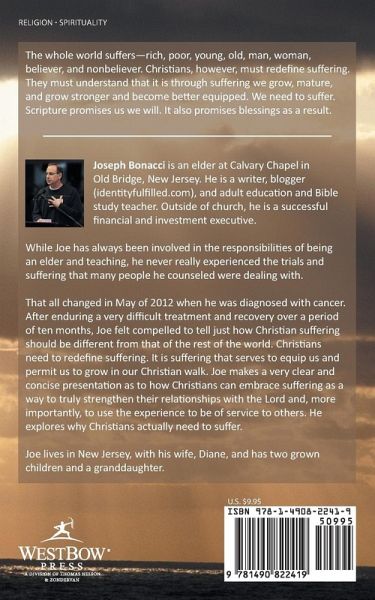 The whole world suffers-rich, poor, young, old, man, woman, believer, and nonbeliever. Christians, however, must redefine suffering. They must understand that it is through suffering we grow, mature, and grow stronger and become better equipped. We need to suffer. Scripture promises us we will. It also promises blessings as a result.