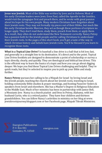 Why should you care about the Jewish roots of Christianity? Jesus was Jewish. Most of the Bible was written by Jews and in Hebrew. Most of the early Christian leaders were Jews. Even Paul, called the Apostle to the Gentiles, would visit the synagogue first and preach there, and he wrote with great passion about his hope for his own people. Many modern Christians have forgotten about their Jewish roots. They may not formally rip pieces out of their Bibles, but much like the early Christian heretic Marcion, they act as though these portions of scripture no longer apply. They don't read them, study them, preach from them, or apply them. As a result, they often do not understand the New Testament correctly. Nancy Petrey has a passion both for the Jewish people and for calling Christians to understand their Jewish roots. In the pages of this short book, you'll get a taste of the way in which Christian history and belief has Jewish roots. You'll be blessed if you learn to recognize those roots.