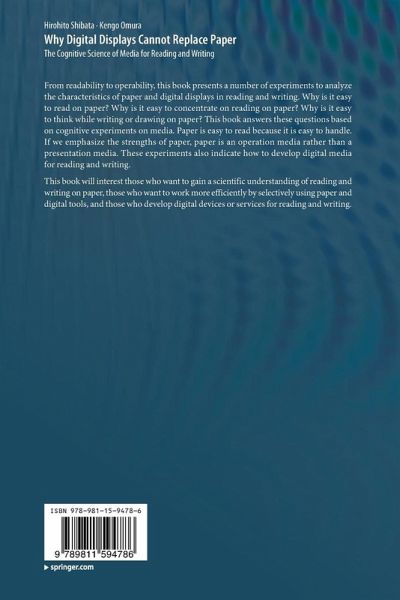 This book will interest those who want to gain a scientific understanding of reading and writing on paper, those who want to work more effectively by selectively using paper and digital tools (e.g. knowledge workers and educators), and those who develop digital devices or services for reading and writing.