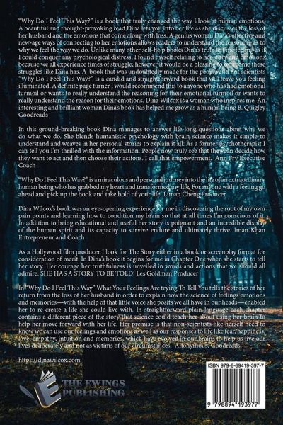 In "Why Do I Feel This Way?" What Your Feelings Are Trying To Tell You, Dina Wilcox tells the stories of her return from the loss of her husband in order to explain how the science of feelings, emotions and memories--with the help of that little voice she posits we all have in our heads--enabled her to re-create a life she could live with. In straightforward, plain language, each chapter contains a different piece of the story as the context for an unscientific experiment Wilcox conducted as she set about to understand what science could teach her about using her brain to help her move forward with her life. Her premise is that non-scientists like herself need to know how we can use our feelings and emotions, as well as such responses to life as fear, happiness, love, empathy, intuition and memories, which have evolved in our brains to help us live our lives deliberately and not as victims of our circumstances.