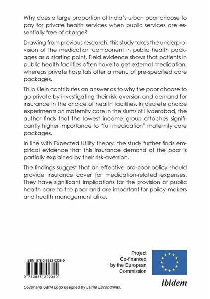 Thilo Klein contributes an answer as to why the poor choose to go private by investigating their risk-aversion and demand for insurance in the choice of health facilities. In discrete choice experiments on maternity care in the slums of Hyderabad, the author finds that the lowest income group attaches significantly higher importance to full medication maternity care packages. In line with Expected Utility theory, the study further finds empirical evidence that this insurance demand of the poor is partially explained by their risk-aversion.