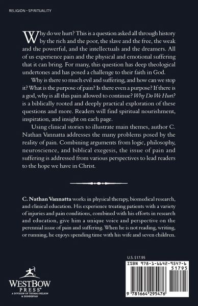 Why do we hurt? This is a question asked all through history by the rich and the poor, the slave and the free, the weak and the powerful, and the intellectuals and the dreamers. All of us experience pain and the physical and emotional suffering that it can bring. For many, this question has deep theological undertones and has posed a challenge to their faith in God. Why is there so much evil and suffering, and how can we stop it? What is the purpose of pain? Is there even a purpose? If there is a god, why is all this pain allowed to continue? Why Do We Hurt? is a biblically rooted and deeply practical exploration of these questions and more. Readers will find spiritual nourishment, inspiration, and insight on each page. Using clinical stories to illustrate main themes, author C. Nathan Vannatta addresses the many problems posed by the reality of pain. Combining arguments from logic, philosophy, neuroscience, and biblical exegesis, the issue of pain and suffering is addressed from various perspectives to lead readers to the hope we have in Christ.
