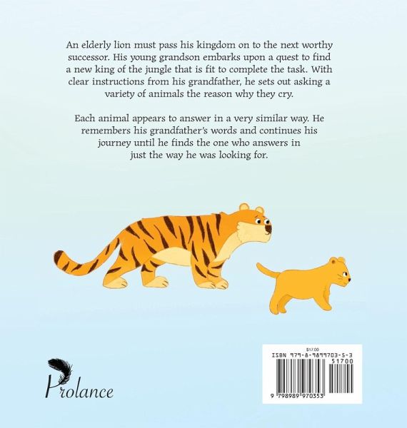 An elderly lion must pass his kingdom on to the next worthy successor. His young grandson embarks upon a quest to find a new king of the jungle that is fit to complete the task. With clear instructions from his grandfather, he sets out asking a variety of animals the reason why they cry. Each animal appears to answer in a very similar way. He remembers his grandfather's words and continues his journey until he finds the one who answers in just the way he was looking for.