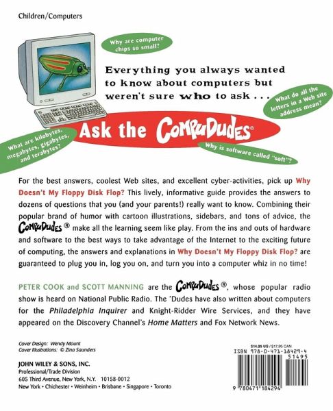 Why Doesn't my Floppy Disk Flop? And Other Kids' Computer Questions Answered by the Compududes. For the best answers, coolest Web sites, and excellent cyber-activities, pick up Why Doesn't My Floppy Disk Flop? This lively, informative guide provides the answers to dozens of questions that you (and your parents!) really want to know. Combining their popular brand of humor with cartoon illustrations, sidebars, and tons of advice, the Compududes make all the learning seem like play. From the ins and outs of hardware and software to the best ways to take advantage of the Internet to the exciting future of computing, the answers and explanations in Why Doesn't My Floppy Disk Flop ? are guaranteed to plug you in, log you on, and turn you into a computer whiz in no time!