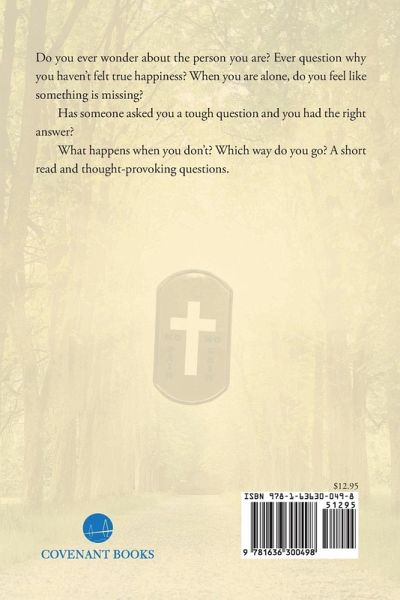 Do you ever wonder about the person you are? Ever question why you haven't felt true happiness? When you are alone, do you feel like something is missing? Has someone asked you a tough question and you had the right answer? What happens when you don't? Which way do you go? A short read and thought-provoking questions.