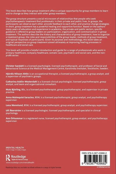 "This will become a first-reference book at all levels of training. It was originally published in Swedish in 2016 and is now issued in English with a new introduction and conclusion. Practitioners will be grateful across the field and in many parts of the world. Written by a team of eight experienced clinicians led by Christer Sandahl, a pioneer in psychology and group therapy, it is fluent, accessible and applied. It provides a thorough and lucid guide for practitioners in a characteristic Scandinavian voice - temperate and inclusive - that assembles the contesting factions of a wide field and their histories in a measured, authoritative, focussed, coherent text. Their account of Focussed Group Therapy (FGT) is an original contribution that will be of value to all practitioners. Why Group Therapy Works and How To Do It, meets challenges posed at the outset. Why do groups with advantageous cost-benefits remain 'the poor relation' in practice? This book could help us change this." - John Schlapobersky, Institute of Group Analysis, London; Author, From The Couch To The Circle: Group-Analytic Psychotherapy In Practice (Routledge 2016)