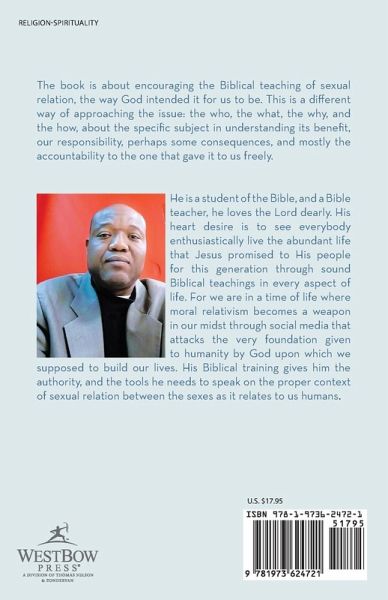 The book is about encouraging the Biblical teaching of sexual relation, the way God intended it for us to be. This is a different way of approaching the issue: the who, the what, the why, and the how, about the specific subject in understanding its benefit, our responsibility, perhaps some consequences, and mostly the accountability to the one that gave it to us freely.