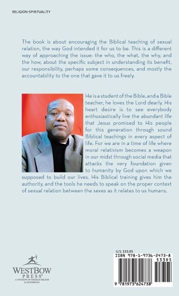 The book is about encouraging the Biblical teaching of sexual relation, the way God intended it for us to be. This is a different way of approaching the issue: the who, the what, the why, and the how, about the specific subject in understanding its benefit, our responsibility, perhaps some consequences, and mostly the accountability to the one that gave it to us freely.