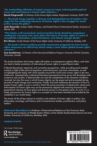 This book elucidates why human rights still matter in contemporary global affairs, and what can lead to better protection of international human rights in a post-liberal order. It blends theoretical, empirical, and normative perspectives, while providing much-needed analysis in light of the perils of populism, authoritarianism, and toxic nationalism, as well as highlighting the hopes with which people around the world view human rights in the new millennium. Systematically combining theoretical perspectives from across the disciplines with numerous case studies, it demonstrates not only the complexities of the domestic conditions involved, but also the ways in which human dignity can be preserved and promoted during periods of rapid change and uncertainty. Finally, the book addresses the question of how to protect human rights in such a world in which the active promotion of democratic values and enforcement of human rights may not be necessarily aligned with evolving economic and geopolitical interests of many great and diverse powers on the global scene. As such, it is a timely intervention for human rights as a concept as it has been attacked and eroded by the instability in our world today. This book will be of key interest to scholars and students of human rights in politics, law, philosophy, sociology, and history and to humanitarian bodies, practitioners, and policy makers.