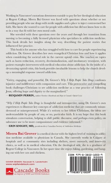 Working in Vancouver's notorious downtown eastside to pay for her theological education at Regent College, Meera Bai Grover was faced with questions about whether or not providing people who use drugs with sterile supplies and a place to inject contravened her faith. She knew she wanted to care for people with addiction but did not know how to do so in a way that fit with her own moral code. She wrestled with these questions over the years and through her transition from nursing to becoming a fully licensed physician who specializes in addiction medicine. This book details her insights along the way, describing the patient stories that influenced her practice. This book is for anyone who has struggled with how to care for people experiencing addiction. Dr. Grover describes her own evangelical Christian lens and how it applies when considering the societal role in the current opioid crisis. She touches on topics such as harm reduction, recovery, decriminalization, and involuntary treatment, with patient examples interwoven with medical education about addiction. In the midst of a devastating opioid crisis, this book provides invaluable lessons to help the church develop a meaningful response toward addiction.