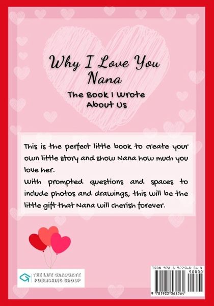 If you are looking for an interactive, fun and memorable grandparent gift for kids ages 5 - 12, then this book is perfect for you. 'Why I Love You Nana' provides prompted questions throughout to tailor the book to make it a highly unique gift. With spaces to include photos and drawings, this book would make the ideal gift for a Birthday, Valentine's Day, Anniversary, Mother's Day or just to say 'I Love You'. Prompted questions include: · If I could take you anywhere in the world, we would visit.. · This was something special that you did for me that I will never forget..... · I think your special 'super-power' is... · When we are apart, I really miss...... With simple yet meaningful prompts for kids and with ample space to write, draw pictures and include photo's, this book is a great way to offer a personal touch. Kids can fill it out and create their Nana book in under an hour for an unforgettable gift. Product Information: · 7 x 10 inch · 50 Pages · Space for photos and drawings · Gloss cover for extra durability