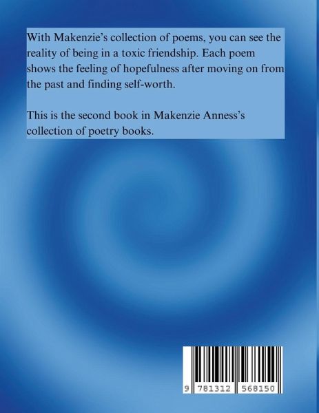 With Makenzie's collection of poems, you can see the reality of being in a toxic friendship. Each poem shows the feeling of hopefulness after moving on from the past and finding self-worth. This is the second book in Makenzie Anness's collection of poetry books.