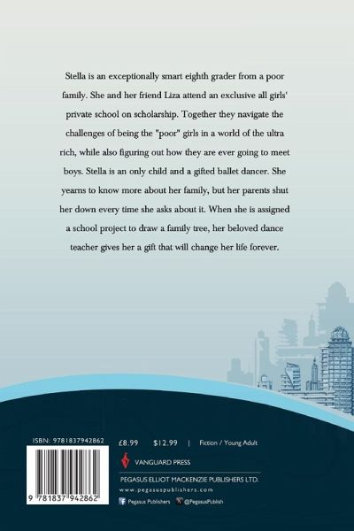 Stella is an exceptionally smart eighth grader from a poor family. She and her friend Liza attend ¿an exclusive all girls' private school on scholarship. Together they navigate the challenges of ¿being the "poor" girls in a world of the ultra rich, while also figuring out how they are ever going ¿to meet boys. Stella is an only child and a gifted ballet dancer. She yearns to know more about ¿her family, but her parents shut her down every time she asks about it. When she is assigned a ¿school project to draw a family tree, her beloved dance teacher gives her a gift that will change ¿her life forever.¿
