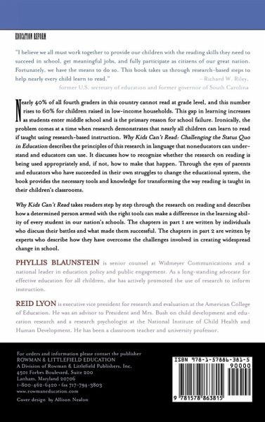 This book takes the reader step-by-step through an understanding of the research on reading and ways in which parents and educators can make a difference in the learning ability of every student in our nation's schools.