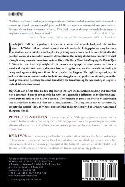 This book takes the reader step-by-step through an understanding of the research on reading and ways in which parents and educators can make a difference in the learning ability of every student in our nation's schools.