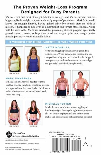 It's no secret that most of us get flabbier the older we get, and it's no surprise that the biggest spike in weight happens in the early stages of parenthood. Mark Macdonald knows the struggle himself, having gained thirty-five pounds after the birth of his son. It happened to him even as a nutritionist and former fitness model, so he knew he wasn't alone in the struggle. Along with his wife, Abbi, Mark has created this proven eight-week program specifically geared toward parents to help them shed the weight, discover new amounts of energy, and most importantly, create new sustainable habits to keep it from coming back.