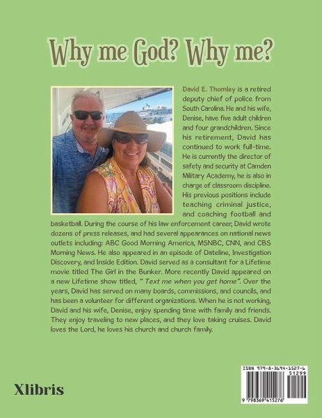 David E. Thomley is a retired deputy chief of police from South Carolina. He and his wife, Denise, have five adult children and four grandchildren. Since his retirement, David has continued to work full-time. He is currently the director of safety and security at Camden Military Academy, he is also in charge of classroom discipline. His previous positions include teaching criminal justice, and coaching football and basketball. During the course of his law enforcement career, David wrote dozens of press releases, and had several appearances on national news outlets including: ABC Good Morning America, MSNBC, CNN, and CBS Morning News. He also appeared in an episode of Dateline, Investigation Discovery, and Inside Edition. David served as a consultant for a Lifetime movie titled The Girl in the Bunker. More recently David appeared on a new Lifetime show titled, " Text me when you get home". Over the years, David has served on many boards, commissions, and councils, and has been a volunteer for different organizations. When he is not working, David and his wife, Denise, enjoy spending time with family and friends. They enjoy traveling to new places, and they love taking cruises. David loves the Lord, he loves his church and church family.