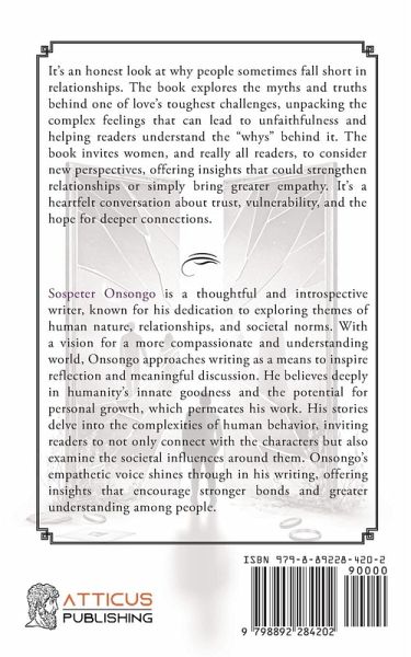 It's an honest look at why people sometimes fall short in relationships. The book explores the myths and truths behind one of love's toughest challenges, unpacking the complex feelings that can lead to unfaithfulness and helping readers understand the "whys" behind it. The book invites women, and really all readers, to consider new perspectives, offering insights that could strengthen relationships or simply bring greater empathy. It's a heartfelt conversation about trust, vulnerability, and the hope for deeper connections.¿ Sospeter Onsongo is a thoughtful and introspective writer, known for his dedication to exploring themes of human nature, relationships, and societal norms. With a vision for a more compassionate and understanding world, Onsongo approaches writing as a means to inspire reflection and meaningful discussion. He believes deeply in humanity's innate goodness and the potential for personal growth, which permeates his work. His stories delve into the complexities of human behavior, inviting readers to not only connect with the characters but also examine the societal influences around them. Onsongo's empathetic voice shines through in his writing, offering insights that encourage stronger bonds and greater understanding among people.
