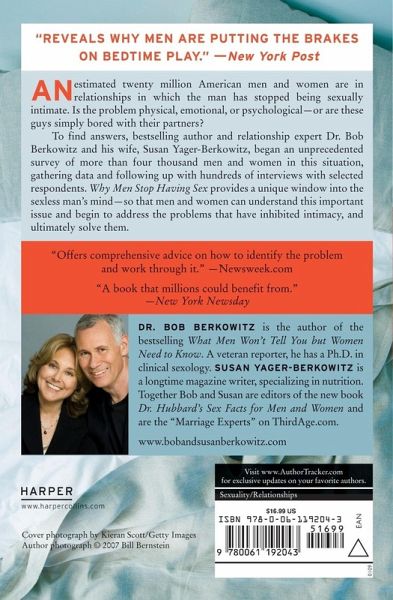 An estimated twenty million American men and women are in relationships in which the man has stopped being sexually intimate. Is the problem physical, emotional, or psychological--or are these guys simply bored with their partners? To find answers, bestselling author and relationship expert Dr. Bob Berkowitz and his wife, Susan Yager-Berkowitz, began an unprecedented survey of more than four thousand men and women in this situation, gathering data and following up with hundreds of interviews with selected respondents. Why Men Stop Having Sex provides a unique window into the sexless man's mind--so that men and women can understand this important issue and begin to address the problems that have inhibited intimacy, and ultimately solve them.