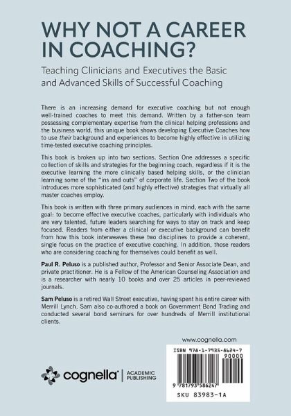 There is an increasing demand for executive coaching but not enough well-trained coaches to meet this demand. Written by a father-son team possessing complementary expertise from the clinical helping professions and the business world, this unique book shows developing Executive Coaches how to use their background and experiences to become highly effective in utilizing time-tested executive coaching principles. This book is broken up into two sections. Section One addresses a specific collection of skills and strategies for the beginning coach, regardless if it is the executive learning the more clinically based helping skills, or the clinician learning some of the "ins and outs" of corporate life. Section Two of the book introduces more sophisticated (and highly effective) strategies that virtually all master coaches employ.This book is written with three primary audiences in mind, each with the same goal: to become effective executive coaches, particularly with individuals who are very talented, future leaders searching for ways to stay on track and keep focused. Readers from either a clinical or executive background can benefit from how this book interweaves these two disciplines to provide a coherent, single focus on the practice of executive coaching. In addition, those readers who are considering coaching for themselves could benefit as well.