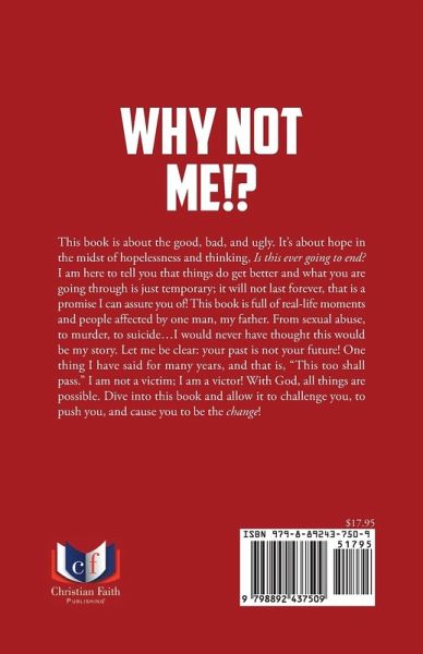 This book is about the good, bad, and ugly. It's about hope in the midst of hopelessness and thinking, Is this ever going to end? I am here to tell you that things do get better and what you are going through is just temporary; it will not last forever, that is a promise I can assure you of! This book is full of real-life moments and people affected by one man, my father. From sexual abuse, to murder, to suicide...I would never have thought this would be my story. Let me be clear: your past is not your future! One thing I have said for many years, and that is, "This too shall pass." I am not a victim; I am a victor! With God, all things are possible. Dive into this book and allow it to challenge you, to push you, and cause you to be the change!