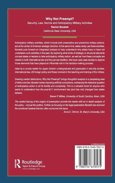 Anticipatory military activities, both preemptive and preventive, are at the centre of American strategic doctrine. Rachel Bzostek puts forward a full understanding of why states have or have not undertaken such activities in the past in order to comprehend why states have rarely used this method.