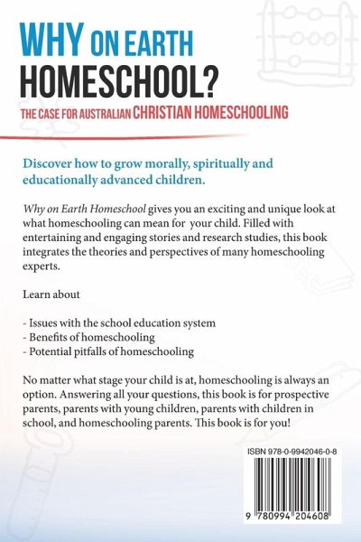 Discover how to grow spiritually, morally and educationally advanced children! This book gives you an exciting and unique look at what homeschooling can mean for your child. Filled with entertaining and engaging stories and research studies, this 285-page book integrates the theories and experts of many homeschooling experts. Introducing one of Australia's FIRST books on Australian Christian Homeschooling! Discover the: Issues with the school educational system Benefits of homeschooling in Australia Potential pitfalls of homeschooling Even YOU can homeschool! No matter what stage your child is at, homeschooling is always an option. Answering all your questions, this book is for prospective parents, parents with young children, parents with children in school and homeschooling parents. This book is for you! What You'll Learn Socialisation - Learn the secret of how to socialise your homeschoolers and avoid social isolation. Academics - See why homeschoolers perform remarkably well compared to schoolchildren. Christianity - Discover how homeschooling can help grow morally and spiritually mature Christians. Independent Learning - Learn why customized learning helps children learn. Creativity - See why homeschooling creates creative kids. Gifted and Special Needs - Improve learning grades and enjoyment in special needs and gifted homeschoolers. Family Bonding - Learn why homeschoolers have great relationships with their parents and siblings. Homeschooling through Highschool - See how you can homeschool even through highschool. Single Parent and Only Child - Discover how you can homeschool your only-child or how to homeschool as a single parent. Transition to University - Learn 3 ways to move from homeschooling to highschool. Highschool Homeschooling - To edit, click on the text to start adding your own words. Answer Their Questions - Teach others about how great homeschooling is, by learning answers to common homeschooling questions. ALSO, Discover why Schools are NOT the Place for Your Kids Learn why structured homeschooling beats the school system in so many ways!¿ Get your kids out of the 'Safe Schools' environment Avoid peer pressure and let children learn from you ¿¿Protect your children from bullying and sexual pressures Discover the secular history of public school and their agenda Avoid the secular worldview and teach your children a Christian worldview Discover why homeschoolers learn better at home compared to a classroom and Learn why home schools are better than public, private and Christian schools.