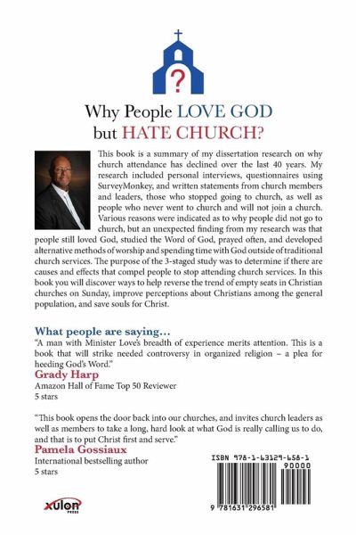 This book is a summary of my dissertation research on why church attendance has declined over the last 40 years. My research included personal interviews, questionnaires using SurveyMonkey, and written statements from church members and leaders, those who stopped going to church, as well as people who never went to church and will not join a church. Various reasons were indicated as to why people did not go to church, but an unexpected finding from my research was that people still loved God, studied the Word of God, prayed often, and developed alternative methods of worship and spending time with God outside of traditional church services. The purpose of the 3-staged study was to determine if there are causes and effects that compel people to stop attending church services. In this book you will discover ways to help reverse the trend of empty seats in Christian churches on Sunday, improve perceptions about Christians among the general population, and save souls for Christ.