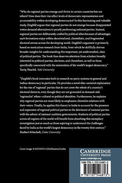 Today, regional parties in India win nearly as many votes as national parties. In Why Regional Parties?, Professor Adam Ziegfeld questions the conventional wisdom that regional parties in India are electorally successful because they harness popular grievances and benefit from strong regional identities. He draws on a wide range of quantitative and qualitative evidence from over eighteen months of field research to demonstrate that regional parties are, in actuality, successful because they represent expedient options for office-seeking politicians. By focusing on clientelism, coalition government, and state-level factional alignments, Ziegfeld explains why politicians in India find membership in a regional party appealing. He therefore accounts for the remarkable success of India's regional parties and, in doing so, outlines how party systems take root and evolve in democracies where patronage, vote buying, and machine politics are common.