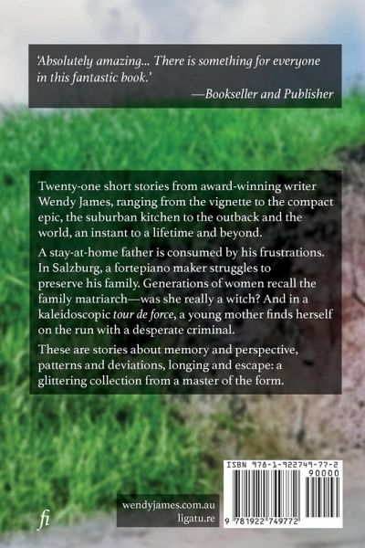 Twenty-one short stories from award-winning writer Wendy James, ranging from the vignette to the compact epic, the suburban kitchen to the outback and the world, an instant to a lifetime and beyond. A stay-at-home father is consumed by his frustrations. In Salzburg, a fortepiano maker struggles to preserve his family. Generations of women recall the family matriarch-was she really a witch? And in a kaleidoscopic tour de force, a young mother finds herself on the run with a desperate criminal. These are stories about memory and perspective, patterns and deviations, longing and escape: a glittering collection from a master of the form.
