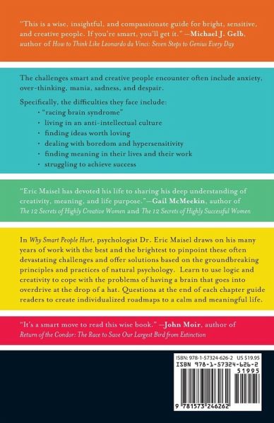 Make Your Gifted Life Meaningful "This book will make a smart person even smarter." ―Dr. Katharine Brooks, You Majored in What? Mapping Your Path from Chaos to Career #1 Bestseller in Counseling & Psychology, Attention-Deficit Disorder, and Mood Disorders Overcome your unique challenges. The challenges smart and creative people encounter―from scientific researchers and genius award winners to bestselling novelists, Broadway actors, high-powered attorneys, and academics―often include anxiety, overthinking, mania, sadness, and despair. In Why Smart People Hurt, psychology specialist and creativity coach Dr. Eric Maisel draws on his many years of work with the best and the brightest to pinpoint these often devastating challenges and offer solutions based on the groundbreaking principles and practices of natural psychology. Find meaningful success. Do you understand what meaning is, what it isn’t, and how to create it? Do you know how to organize your day around meaning investments and meaning opportunities? Are you still searching for meaning after all these years? Many smart people struggle with reaching for or maintaining success because, after all of the work they put into attaining it, it still seems meaningless. In Why Smart people Hurt, Dr. Maisel teaches you how to stop searching for meaning and create it for yourself. In Why Smart People Hurt, you will find: * You are not alone in your struggles with living in a world that wasn't built for you or your intelligence * Logic- and creativity-based strategies to cope with having a brain that goes into overdrive at the drop of a hat * Questions that help you create your own personal roadmap to a calm and meaningful life Readers of true, natural self-help books for gifted people struggling with life, anxiety, and depression, like Living With Intensity, Misdiagnosis and Dual Diagnoses of Gifted Children and Adults, or Your Rainforest Mind, will learn how to create meaning in their lives with Why Smart People Hurt.