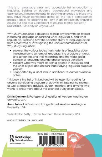 Designed to help anyone with an interest in studying language understand what linguistics is, and what linguists do, this book will be essential reading for anyone considering a course of study in this fascinating subject, as well as teachers, advisors, student mentors and anyone who wants to know more about the scientific study of language.