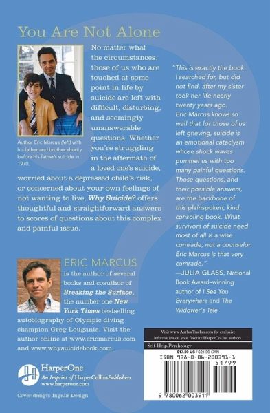 "The need for this book is obvious. Why Suicide is a must read for anyone who is a student of life." -- John Shelby Spong, author of Eternal Life: A New Vision--Beyond Religion, Beyond Theism, Beyond Heaven and Hell Subtitled "Questions and Answers About Suicide, Suicide Prevention, and Coping with the Suicide of Someone You Know," Why Suicide? by Eric Marcus is an important, non-judgmental guide that bestselling author Jonathan Kellerman calls, "compassionate, informative, and insightful." Anyone whose life has been dramatically touched by this most shattering occurrence can find answers and solace in this extraordinary book.