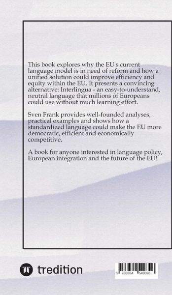 This book explores why the EU's current language model is in need of reform and how a unified solution could improve efficiency and equity within the EU. It presents a convincing alternative: Interlingua - an easy-to-understand, neutral language that millions of Europeans could use without much learning effort.Sven Frank provides well-founded analyses, practical examples and shows how a standardized language could make the EU more democratic, efficient and economically competitive.A book for anyone interested in language policy, European integration and the future of the EU!
