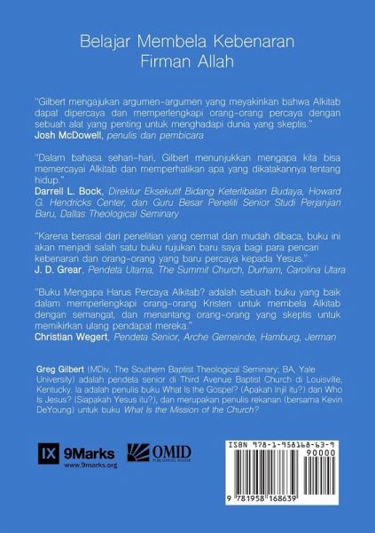 The Bible stands at the heart of the Christian faith. But this leads to an inescapable question: why should we trust the Bible? Written to help non-Christians, longtime Christians, and everyone in between better understand why God's Word is reliable, this short book explores the historical and theological arguments that have helped lead millions of believers through the centuries to trust the Bible, from Genesis to Revelation. Written by pastor Greg Gilbert, author of the popular books What Is the Gospel? and Who Is Jesus?, this volume will help Christians articulate why they trust the Bible when it comes to who God is, who we are, and how we're supposed to live.
